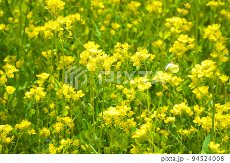 菜の花畑とモンシロチョウ1 岡山県美作市