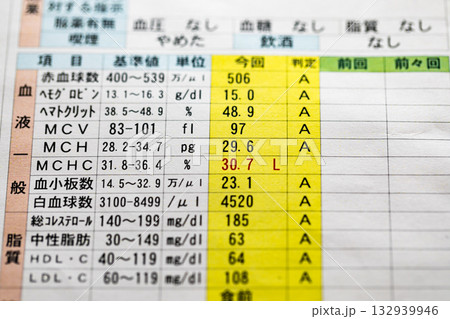 血液検査 結果表 診断結果 健康診断 赤血球数 白血球数 血小板数