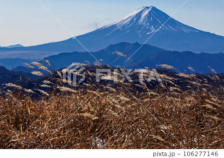 山梨県大月市の白谷ノ丸から草紅葉を前景に富士山