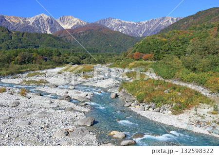 白馬大橋から望む秋の北アルプス