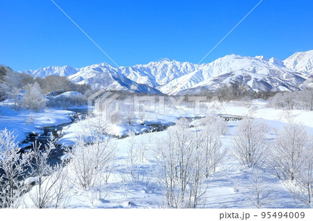 冬の晴れた日の冬景色 五竜岳を望む絶景