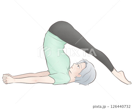 ヨガ(鋤のポーズ)をとるシニア女性のイラスト