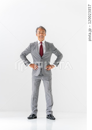 タキシードを着た両手を広げた、実業家の男性とお祭りのやぐら