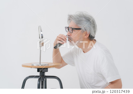シニア女性 ミドル男性 親子 母 息子 悩む