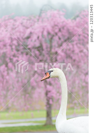 しだれ桜と白鳥(大分県別府市)