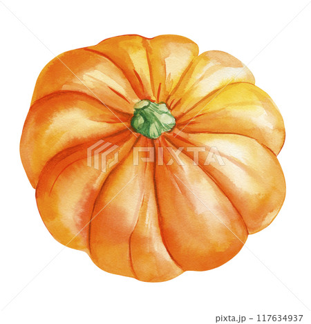 Orange pumpkin watercolor isolated. Hand drawing fall harvest. Halloween celebration, Autumn Vegetable illustration