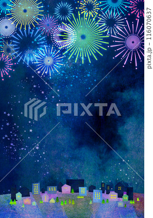 水彩画風の朝顔と花火の夏イメージ