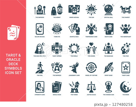 tarot oracle deck symbols icon set featuring cards spiritual concepts, Lovers World High spread priestess Tarot