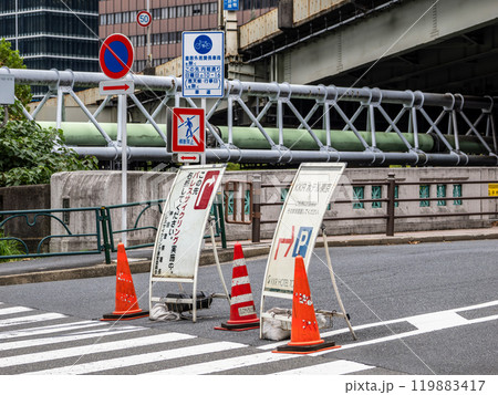 日本の東京都市景観 「祝賀御列の儀」を前に厳戒態勢・(鍜治橋通り・馬場先門付近)=10日