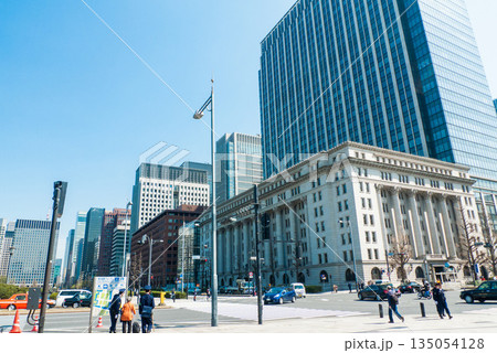 東京 千代田区 皇居前の内堀通りとビル群