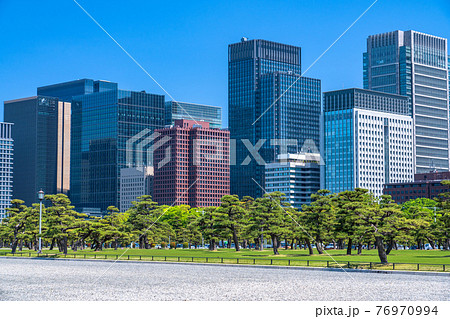 東京大手町 皇居外苑と大手町ビル群 東京都千代田区