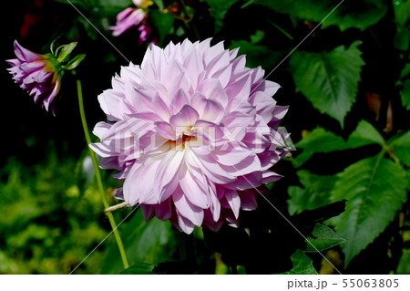 調布市の植物園に咲く淡い紫色のダリア(銀映)
