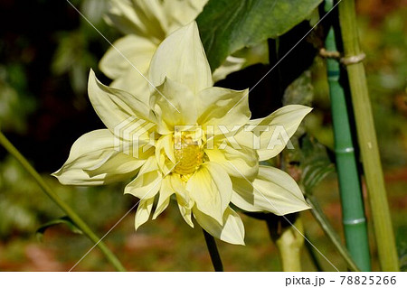 調布市深大寺元町の植物園に咲く黄色のダリア(ペルセウス)の花