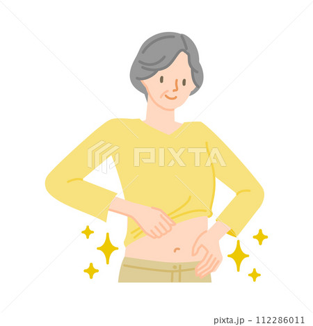 お腹が綺麗になって喜ぶ笑顔のシニア女性