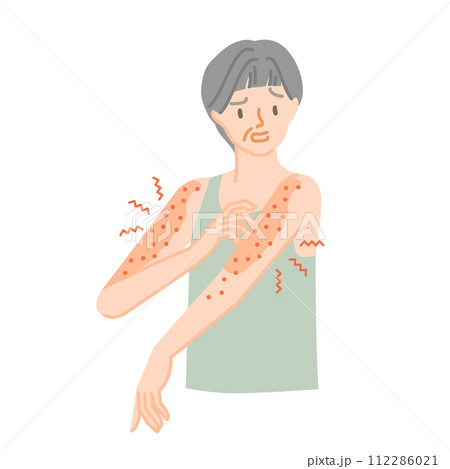 皮膚の病気:腕がかゆくてイライラするシニア女性
