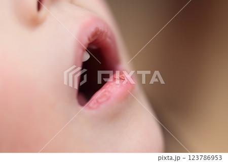 唇が荒れている3歳の女の子
