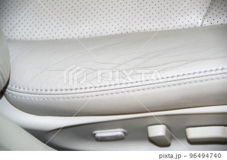 高級乗用車の明るいベージュ色の本革シートの襠部分