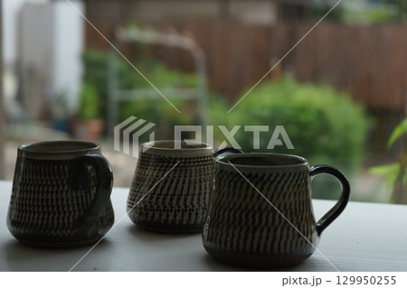 大分県日田市の山間にある小鹿田焼の里で器を天日干しする光景