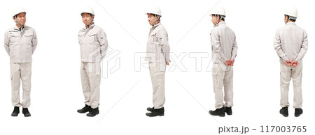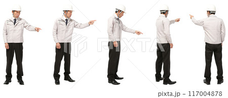 工場・建設勤務のヘルメット作業着男性の全身人物切り抜き素材