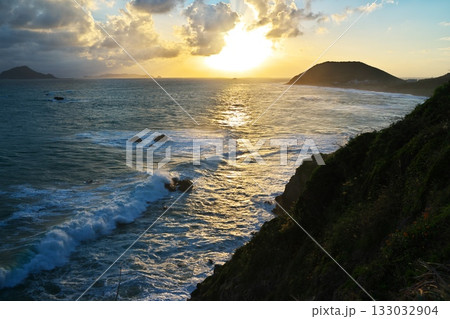 伊良湖岬 日出園地防備衛所跡から夕日を望む