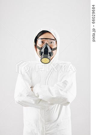 Man in protective clothing and gas mask