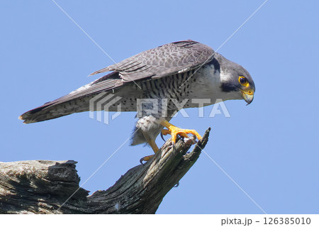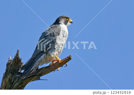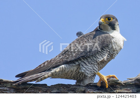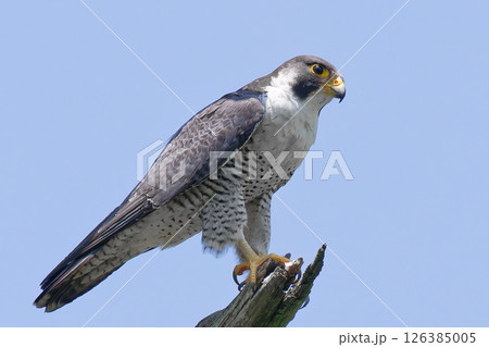 子育て期、周りを監視してこちらに気づくハヤブサ成鳥