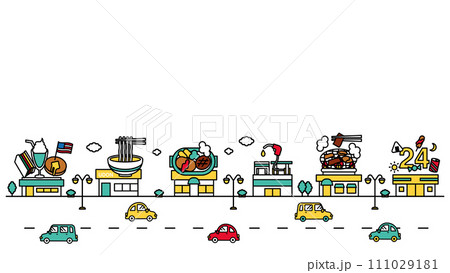 シンプルな線画のロードサイドにあるショップアイコンセットAのイラスト