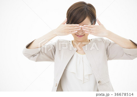 目を塞ぐ若い女性 ビジネスウーマン