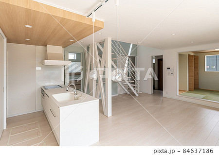 住宅イメージ 新築住宅 直線階段とシーリングファン