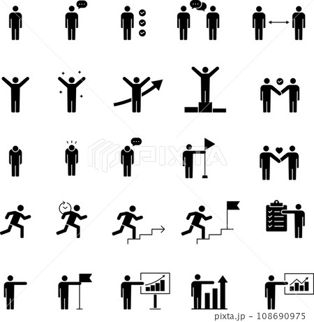 様々なポーズとアイコンのピクトグラムセット