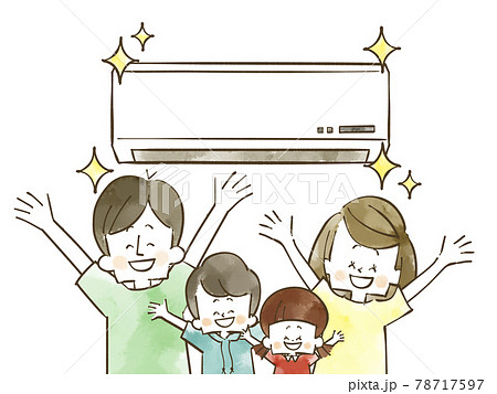 キレイなエアコンと喜んでいる家族