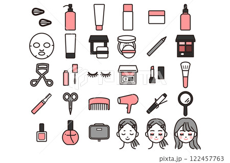 美容アイコンのイラスト素材セット_手描き風塗りなし線のみ