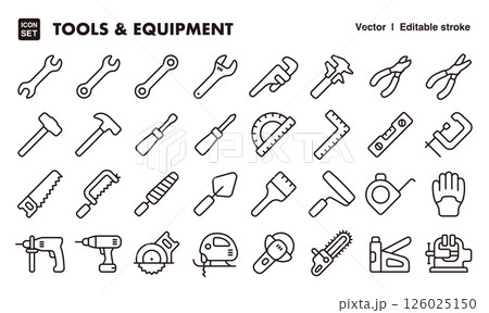 工具アイコンイラストセット EPS版は線の太さ等編集可能