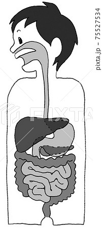 人体図 消化器 手描きイラスト(名称あり、モノクロ)