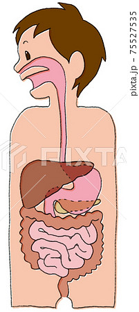 人体図 消化器 手描きイラスト(モノクロ、名称あり)
