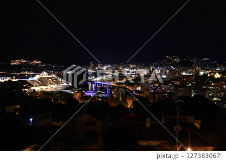 グラバースカイロード頂上付近から眺める長崎の街並み(豪華客船停泊中)