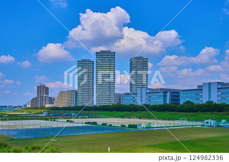 夏の川崎市中原区(東京都大田区)のガス橋から下丸子(3,4丁目)方面