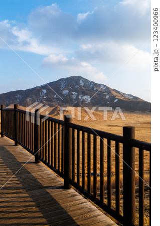 一面枯草色の冬の米塚下園地
