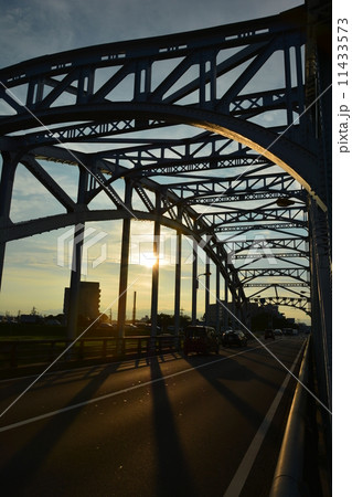夕暮れのシルエットが美しい木曽川橋