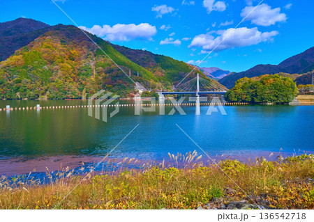 秋の神奈川県足柄上郡山北町の丹沢湖から西側(大仏大橋方面)の風景
