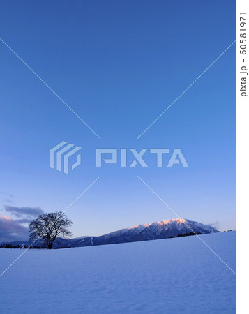 風景写真 小岩井農場 冬の一本桜 岩手山 岩手県
