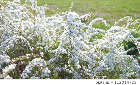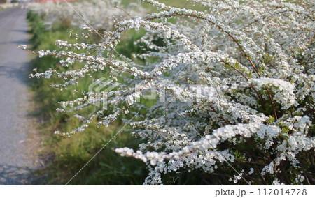 春になると道端に白い小花を咲かす雪柳のイラスト