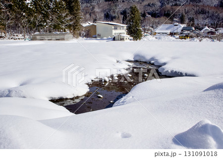 雪で覆われた東北地方の田舎と自然の風景