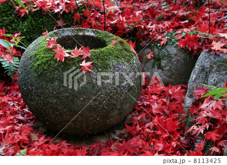 石甕に舞い落ちたもみじ