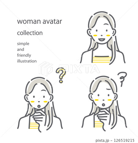 女性の髪型イラストセット ショート、ミディアム、ロングヘア