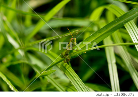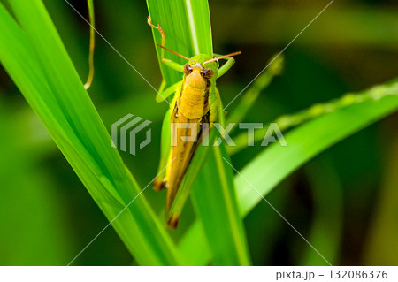 葉に止まるバッタ