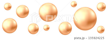 Pearl beads. Gold and silver spheres. Platinum circle shapes. 3D glitter balls. Glass and metal gradient buttons. Jewel colorful orbs. Jewelry elements. Vector realistic bubbles set