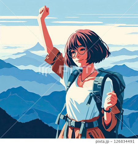 Smiling Female Hiker in Scenic Mountains with Generative AI.