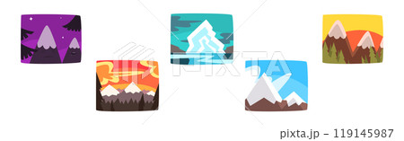 Beautiful Snowy Mountains Landscape Natural Scene Vector Set