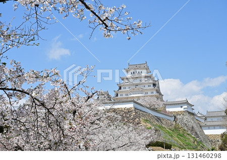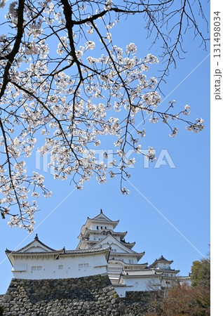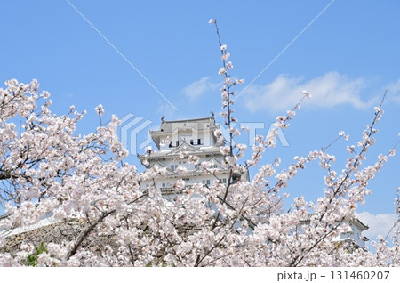 りの一渡櫓と大天守 桜の季節(姫路城)